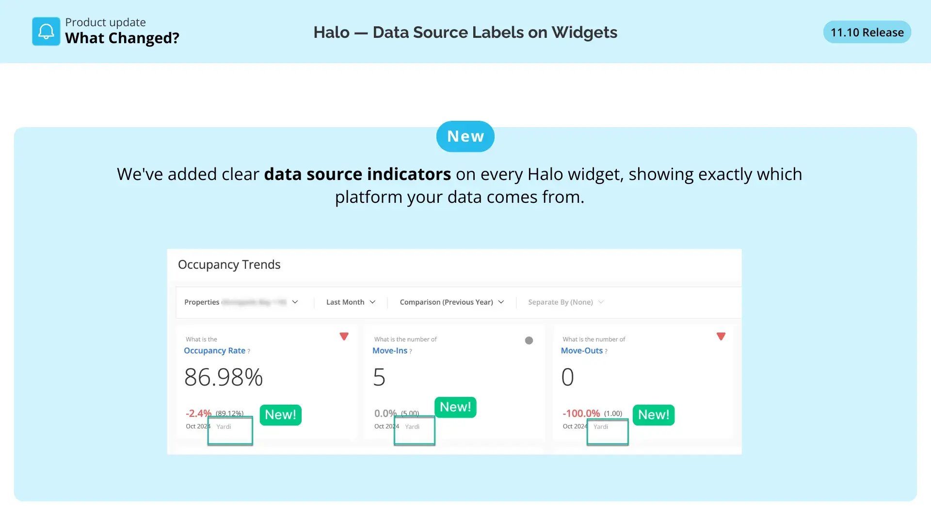 We've added clear data source indicators on every Halo widget, showing exactly which platform your data comes from.